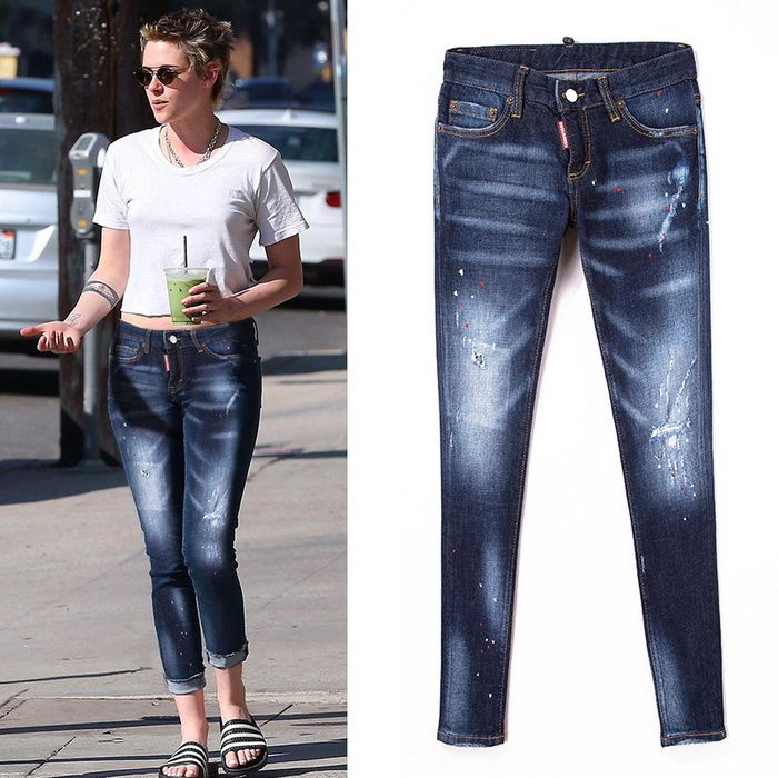 2019 Women Denim Jean Bleach Wash Paint Damaged Jeans With ...